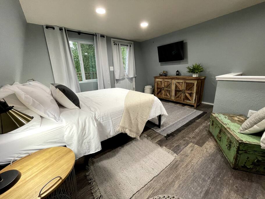 Take it easy at this unique and tranquil getaway. One bedroom perfect for a couples getaway. Amazing sauna perfect for snowy nights!